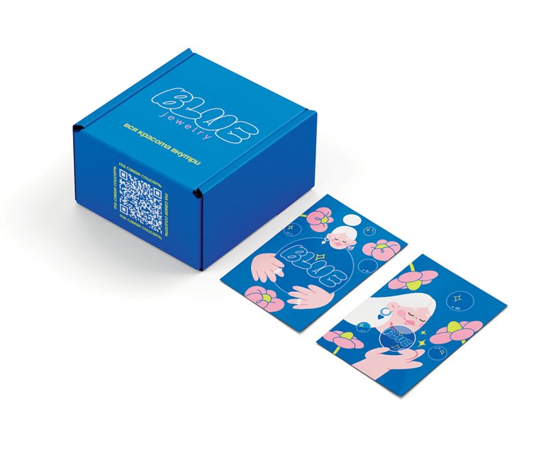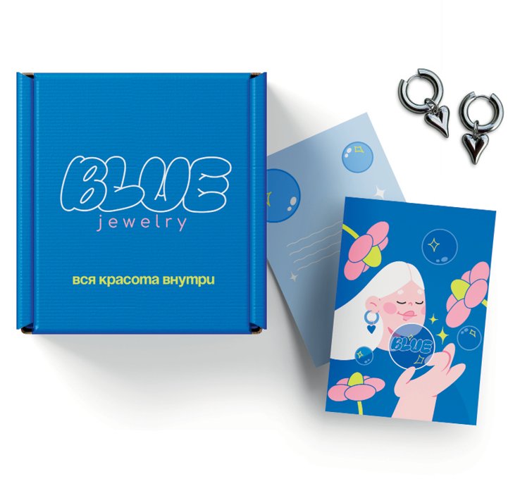 Еще один мой пример проекта с упаковкой – иллюстрации для бренда украшений Blue jewerly.
