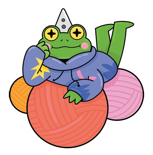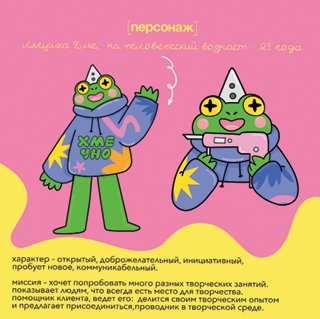 Из ключевых узнаваемых элементов лягушки Хме мы оставили колпачок и глаза-крестики, а в остальном мне предоставили полную свободу.
