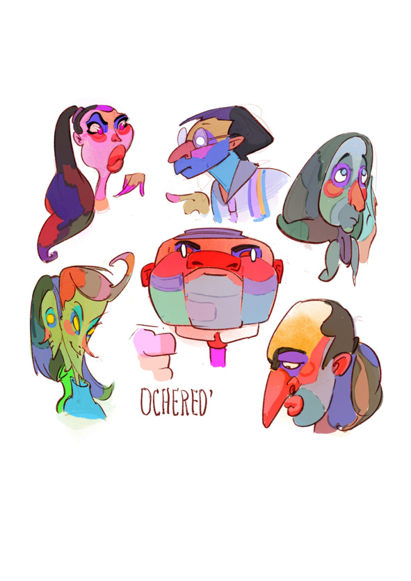 Вот стоит терракотовый пухлый иностранец в очках, он вроде пришел за какой-то визой. А рядом с ним пара зеленых женщин, они шепчутся, неприятно шипят и постоянно осматриваются. У другого окна пожилая пара с кипой бумаг и бледно-фиолетовым сыном, он нервничает, переживает и постоянно смотрит на часы. Еще оранжевый молодой человек, он был очень грустный, и это вносило некоторый диссонанс. Замкнула очередь мадам в розовом пиджаке с большими губами, сумкой и запросом.