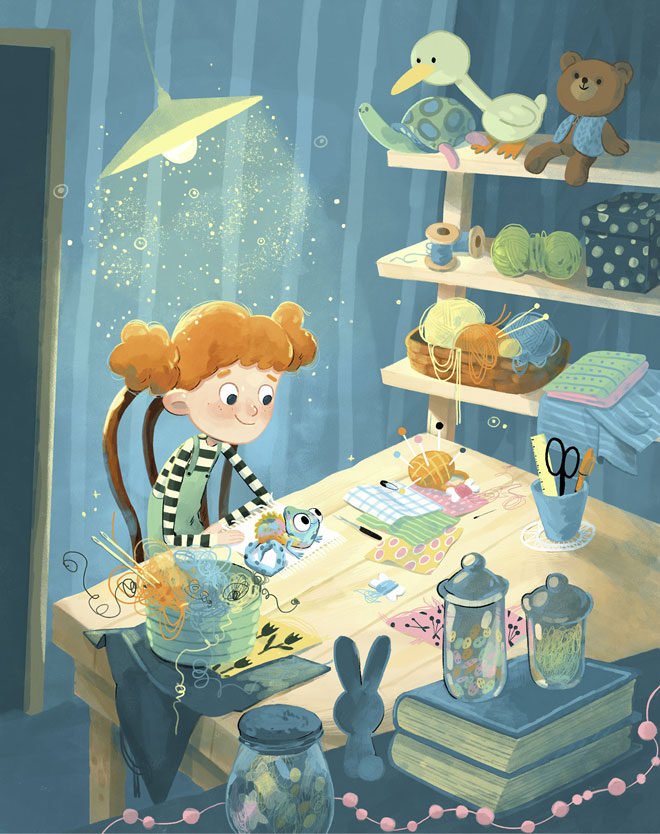 Она убрала со стола нитки и ножницы, лоскутки и игольницу, полюбовалась ещё раз на хамелеона и ушла. Симпатичный вышел малыш.