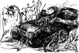 – У меня еще под рукой скалка была… такая, знаешь, которой повар Кастрюля блины раскатывает. Я того, что на руле, этой скалкой прямо по… в общем, всех раскидал. Вдруг слышу – сзади шебуршатся. Я оглянулся – а там… батюшки – целые полчища! Я обратно – прыг на сидение – и по газам! А они и спереди! Поехал прямо по ним. А они наматываются на колеса, пищат, хрустят. Гадость какая! Понимаешь, Вилка?
