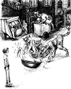 Бульвар был пуст, людишки еще не проснулись. Только далеко впереди кто-то шел Барвинке навстречу. Это был охотник Патрон. На поводке он вел своего бультерьера Булика, а через плечо у него висело охотничье ружье. Булик вырвался и с веселым лаем кинулся лизать Барвинке лицо.