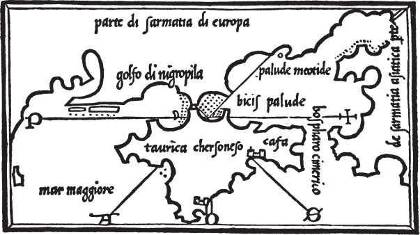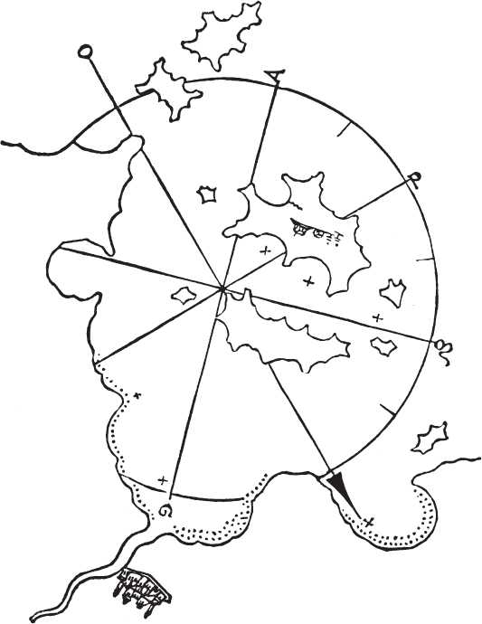 Существовали руководства по плаванию не только между различными материковыми гаванями, но и инструкции для путешествий между ними и многочисленными островами Средиземного моря и прилегающих морей. Так возникли «isolario» (книги островов). Самая старая из сохранившихся – достаточно поздняя работа, «Isolario» Кристофоро Буондельмонте 1420 г. Она содержит не только планы островов и гаваней (рис. С), но и карты гораздо более обширных областей и даже карту мира. Представление о том, насколько важными и распространенными были в то время «книги островов», может дать нам тот факт, что первая из них была напечатана еще в XV в., вскоре после изобретения книгопечатания. Это описание Греческого архипелага Бартоломео Турко, или, как он сам себя называл, Бартоломео далли Сонетти (1485 г.) (рис. 9). Позже, в 1528 г., Бенедетто Бордоне расширил эту работу, включив в нее даже Балтику и некоторые из островов Америки. Эта переработанная версия, в свою очередь, послужила базой для создания Пири Рейсом современного ей турецкого варианта.
