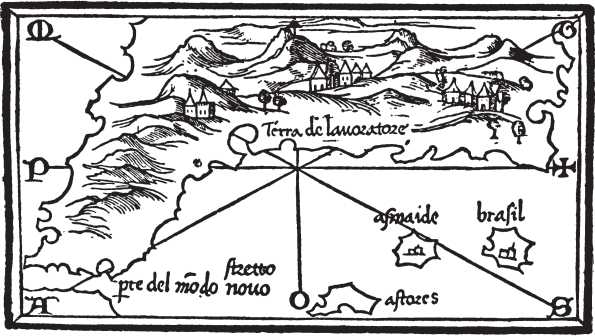 Рис. 10. Выгравированные на дереве карты в «Isolario» Бенедетто Бордоне, Венеция, 1528 г.: вверху — Крым и Азовское море; внизу — Северная Атлантика с Гренландией («terra de lauoratore») и Гудзонов пролив