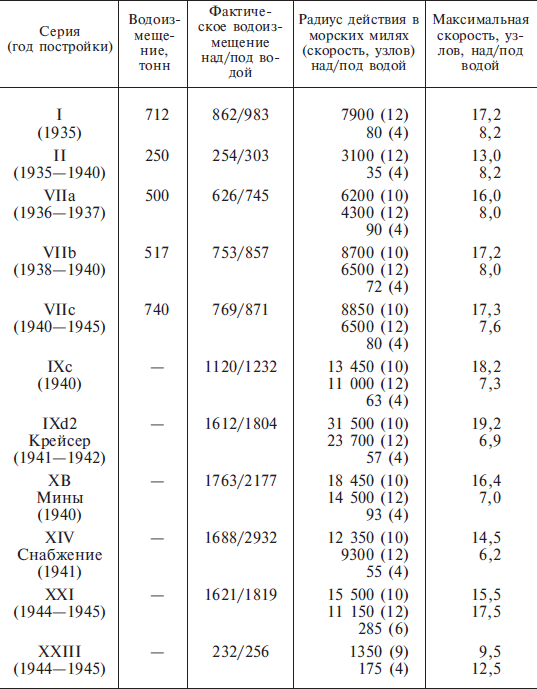 ОСНОВНЫЕ ХАРАКТЕРИСТИКИ ГЕРМАНСКИХ ПОДВОДНЫХ ЛОДОК