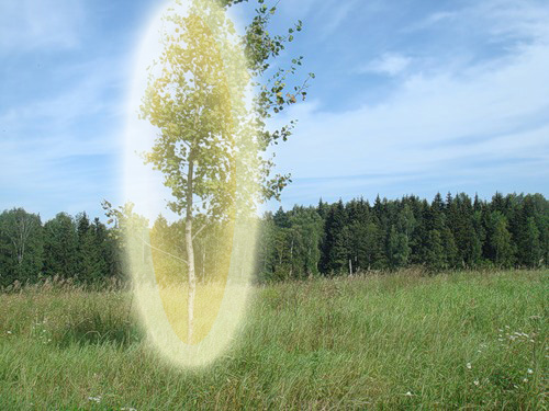 Энергококон у осины овальный, внутри выглядит темнее, словно оранжевый цвет, а на поверхности светло-желтый, бежевый. Зимой все лиственные деревья сжимаются. Часть их энергии уходит из веток в ствол и корни, и деревья зимой выглядят иначе, словно сардельки с основным сиянием в корнях. Но осина особо глубоко уходит в корень, что ее кокон становится как темно-оранжевая труба.