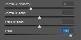Выполните коррекцию теней, смещая, в плюс или минус ползунок тени.