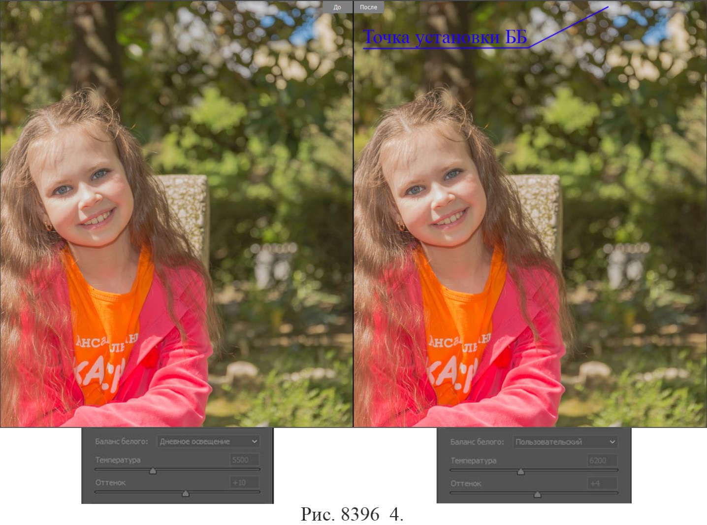 2. При неудовлетворительном результате повторно кликните по соседнему месту, клик установит новый ББ. Оцените изображение. При отрицательном эффекте установите ББ – дневное освещение.