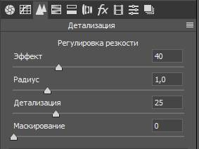 VI. Оцените контрастность средних тонов. Современные объективы дают хорошую контрастность. Избыток контрастности усугубит засветку светов и не проработку теней. В большинстве случаев числовое значение контрастность и чёткость на первом этапе коррекции устанавливают 0.