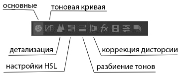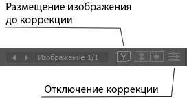 Клик по символу отмена коррекции (окна второго изображения), отключит коррекцию всех параметров в окне основные. Для оценки последнего шага коррекции нужно применить отмену и возврат действия, в этом случае вы увидите результат предыдущего шага и текущей коррекции.