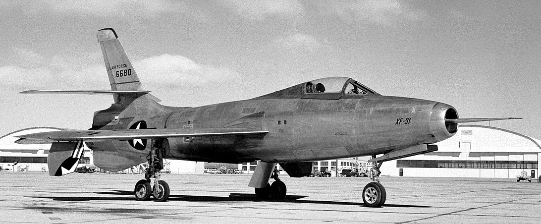 Военные согласились с таким экстравагантным предложением и выдали контракт на две опытных машины ХF-91 под названием «Тандерсептор». Первая с обычным круглым воздухозаборником без радиолокатора начала лётные испытания на авиабазе Мурок 9 мая 1949 г и к концу года выполнила сорок полётов без ракетных двигателей.