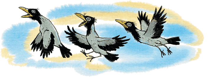 – Наш папа вороною стал! Наш папа летать умеет! Какой наш папа храбрый!