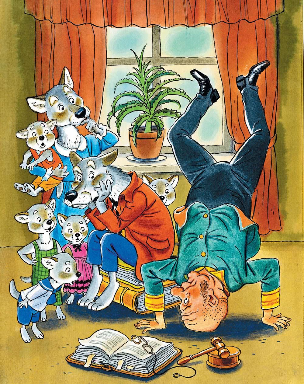 И все остались очень довольны, как решил лысый су-дья. Даже сам волк – и тот остался очень доволен. Ему, правда, без хвоста было очень неудобно: ни пыль подтереть нельзя, когда хочет сесть наземь, ни муху согнать. Да и так очень некрасиво без хвоста.
