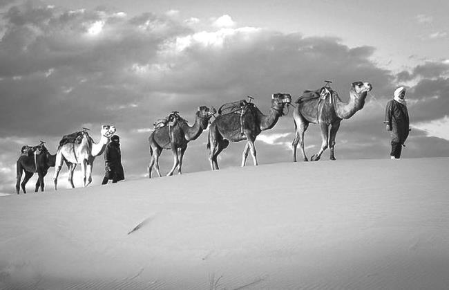 Караваны верблюдов, которые пересекали большие дюны пустыни Сахара, начинались в древности, но достигли своего золотого периода с 9 века нашей эры. В пору своего расцвета караваны состояли из тысяч верблюдов, путешествующих из Северной Африки через пустыню в регион саванн на юге и обратно в опасном путешествии, которое могло занять несколько месяцев. Останавливаясь по пути в жизненно важных оазисах, караваны в значительной степени контролировались берберами, которые действовали как посредники при обмене такими желанными товарами, как соль, золото, медь, шкуры, лошади, рабы и предметы роскоши. Транссахарская торговля принесла с собой идеи в искусстве, архитектуре и религии., преобразуя многие аспекты повседневной жизни в городах прежде изолированной части Африки.