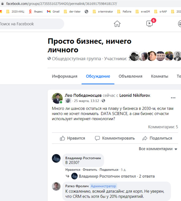 // Ратко Фролич Администратор// К сожалению, всякий датасайнс для корп. Не уверен, что CRM есть хотя бы у 20% предприятий.//