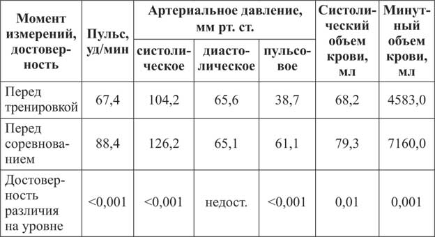 Таблица 1. Средние показатели гемодинамики у 39 спортсменов, в мотивации которых преобладает стремление добиться успеха