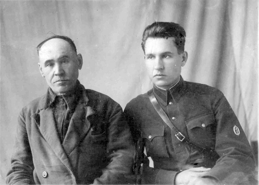 Инжавино, январь 1940 года. Я, курсант школы НКВД, с отцом – Георгием Федоровичем Ивановым