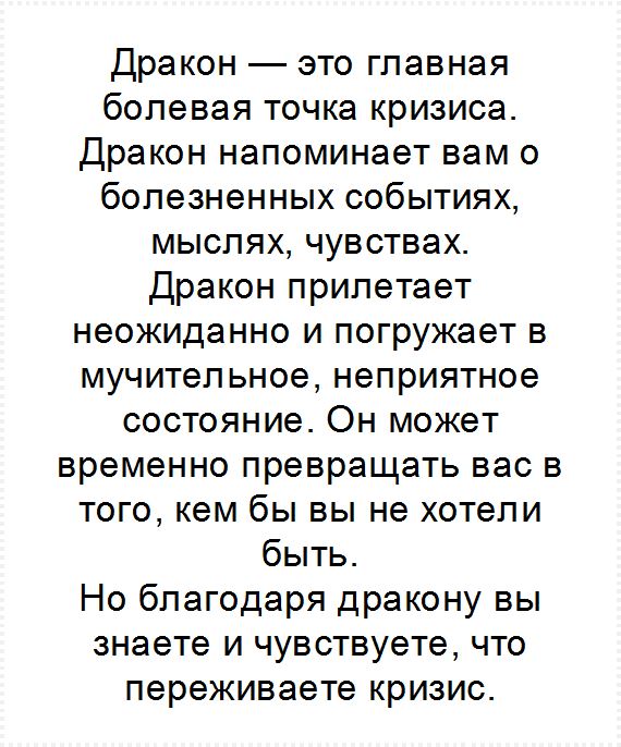 А написанное в пункте 4 и есть то, во что дракон превращает вас, когда прилетает, ведь, когда он терзает вас, вы кажетесь себе именно тем, кем или чем не хотели бы стать.