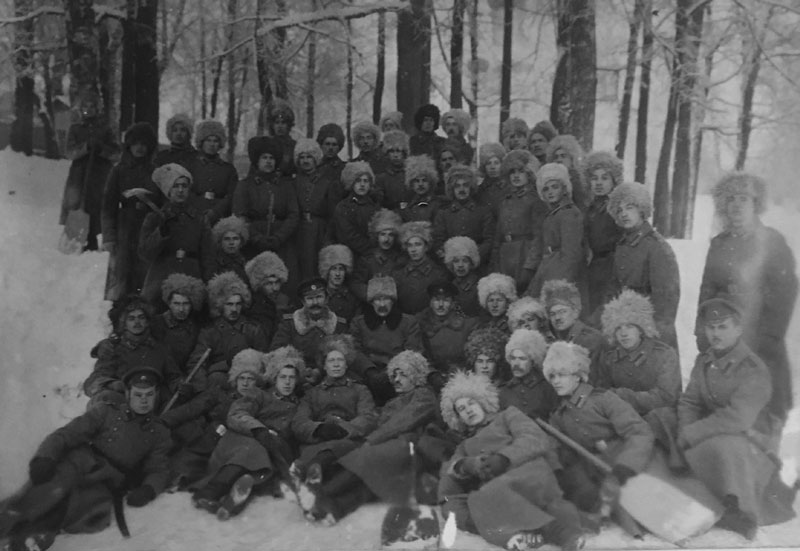 «Расчистка катка», декабрь 1916 г. В центре: полковник барон В. К. де Пеленберг, полковник Марков, поручик В. И. Платицын
