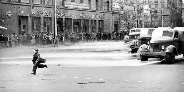 Фундаментально иным был метод работы советских фоторепортеров. В отличие от своих западных коллег, отечественный фотокорреспондент, в особенности добившийся или желающий добиться успеха, был так или иначе вынужден действовать в строгом соответствии с требованиями редакции, что, по сути дела, означало соблюдение идеологических установок партийного курса. Это отнюдь не означало, что в советской фоторепортажной среде работали одни лишь политические лоялисты. Однако советский фотограф, в отличие от западного, не был в полной мере хозяином своего творчества и судьбы, а за отказ подчиняться воле государства он, как и его родственники, мог поплатиться далеко не только славой или же материальным достатком. Каждое, казалось бы, малозначительное действие советского фоторепортера неминуемо становилось в его жизни буквально судьбоносным мгновением.