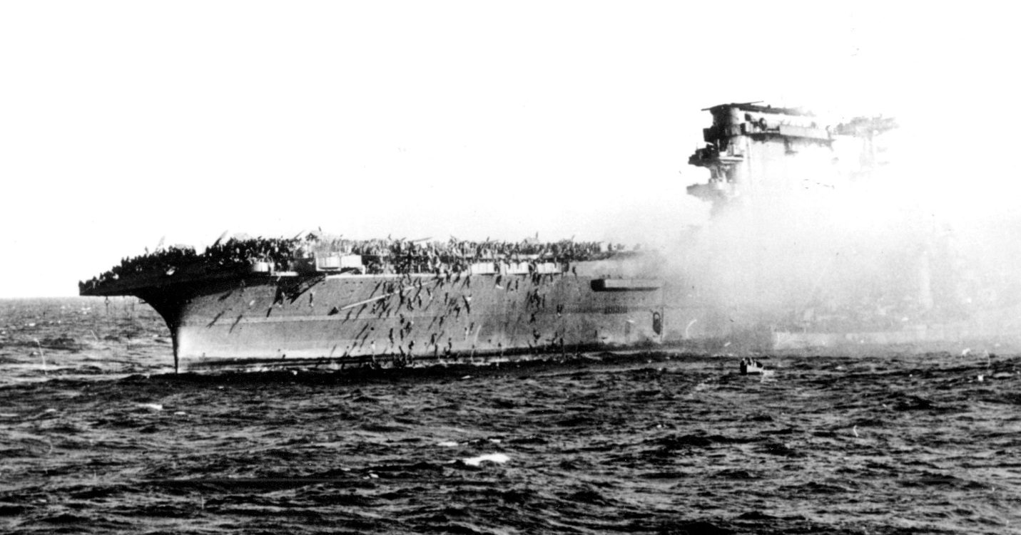 Торпедированный «Лексингтон» держался на плаву уже час, когда серия взрывов от воспламенившегося топлива отправила его на дно. Погибло 216 моряков, остальные 2735 были подобраны эсминцами.