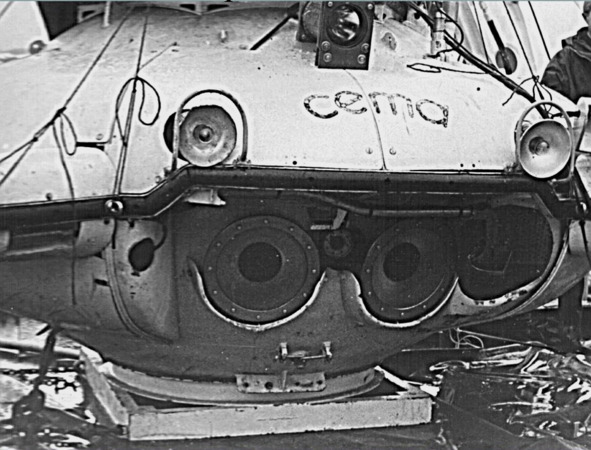Корабль науки «Калипсо» поразил нас своими малыми размерами (водоизмещение всего 350 тонн) и изобилием различной современной аппаратуры, приобретенной Кусто на собственные средства. На носу судна специальная площадка для трехместного вертолета. Здесь же находится компрессорная установка для накачивания баллона-аэростата, на котором в специальной гондоле поднимается Филипп Кусто до высот 3—4 км. В носовой части судна глубоко под водой (ниже ватерлинии) устроена достаточно просторная прозрачная кабина – бульба, в которой может находиться кинооператор или установлена телекамера. Возможность съемки – до 100 м. В штурманской рубке 4 телекамеры, приборы приема информации со спутника. На корме в трюме уютно размещается субмарина – «ныряющее блюдце», которая извлекается при помощи стрелы пятитонного крана. Несмотря на прохладный свежий ветер, члены экипажа в довольно легкой одежде и все в красных шапочках – символ команды «Калипсо». Все постоянно в движении, часто шутят и смеются.