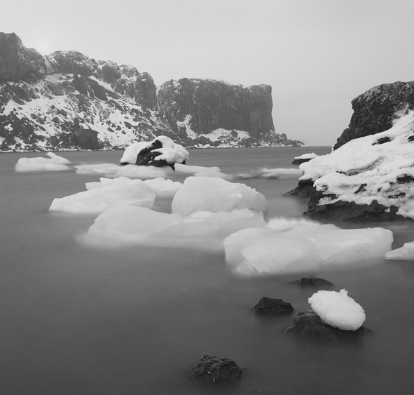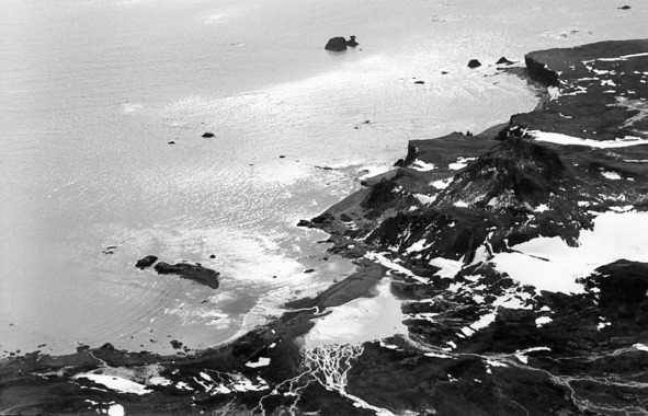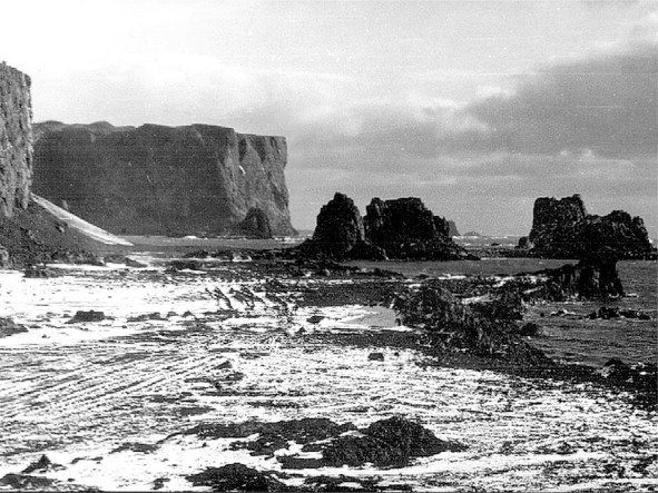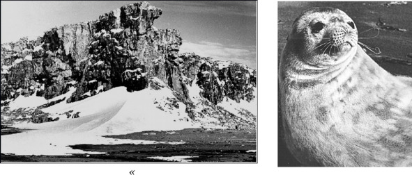 1,5 км прошли незаметно. Пройдя за 30 минут от берега Атлантического до берега Тихого океана, мы попали в какую-то волшебную страну. Ошеломляющее зрелище предстало перед нами: бушующий пролив Дрейка, величавая скала Флэт Топ – вулканическая пробка, справа припорошенная снегом каменная декорация, напоминающая силуэт тигра, а вдали выглядывающие из бурлящих волн океана – причудливые скалы и, как пиратские фрегаты под всеми парусами, блуждающие призрачные айсберги. Те, кто побывал на Земле Франца-Иосифа, взглянув на мыс Флэт Топ, скажут: «Это скала Рубини на острове Гукера». Но скала Флэт Топ находится на противоположной стороне земного шара. Их роднит только происхождение – застывшая лава когда-то действующего вулкана. Береговая панорама подобна декорациям к романам о приключениях пирата-адмирала Фрэнсиса Дрейка. Просто фантастическая картина. Холодные свинцово-серые воды пролива Дрейка не знают покоя. В хорошую, спокойную погоду, пролив бурлит, донося до станции отголоски далеких штормов. Даже зимой, когда море скует лед, этот шум будет слышен постоянно. О звуковой панораме пролива Дрейка можно писать много, но услышанное и увиденное не поддастся словесному описанию. Эту музыкальную симфонию надо одновременно слушать и видеть наяву.