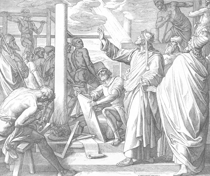 Открытие дома Господня, построенного Соломоном, в присутствии всех старейшин Израилевых; Облако наполнило дом; Слово царя к народу; Его молитва посвящения; Он благословляет народ и увещевает; Принесением жертв и празднованием закончено освящение храма.