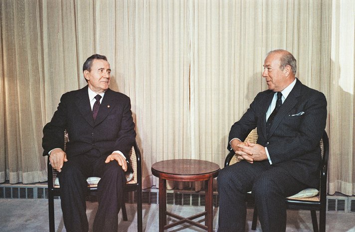 Министр иностранных дел СССР А.А. Громыко и государственный секретарь США Дж. Шульц в Нью-Йорке. 27 сентября 1984