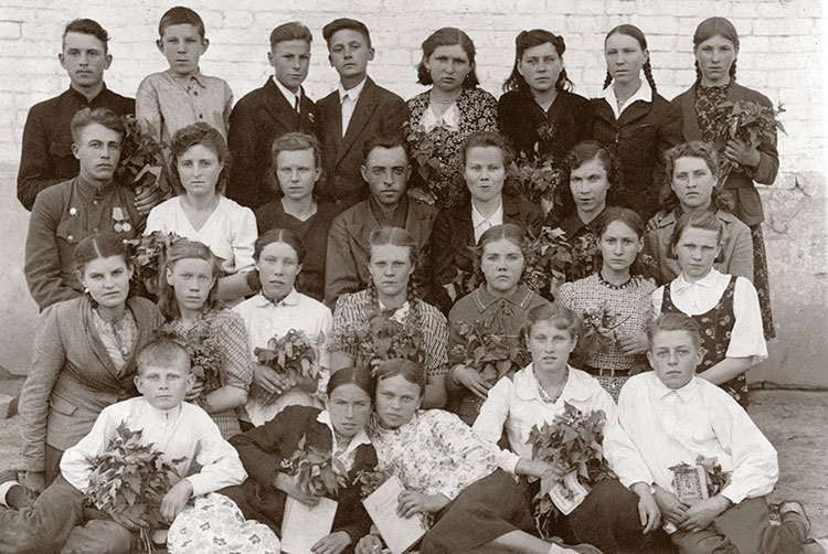 Выпускной класс. Горбачев крайний в верхнем ряду слева