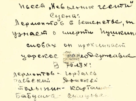«Лермонтов в бешенстве, он только что узнал о смерти Пушкина», – гласит подпись на обороте этого фото. В роли Лермонтова – ученик Горбачев