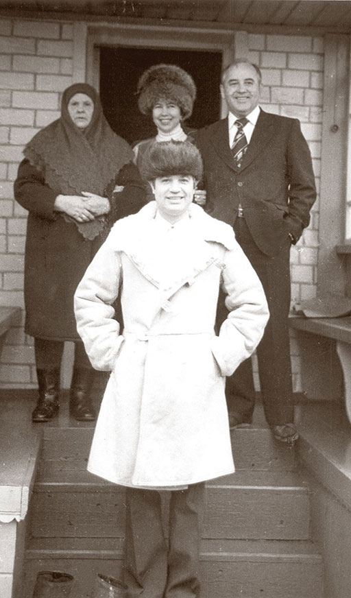 Секретарь ЦК КПСС Михаил Горбачев с мамой и братом – военным летчиком – на крыльце родного дома в Привольном