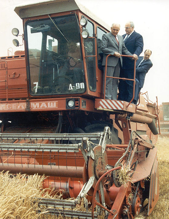 Михаил Горбачев и Гельмут Коль на комбайне в степях Старополья