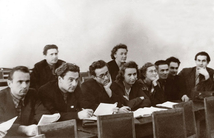 Горбачев с однокурсниками в одной из аудиторий на Герцена, 11 (он крайний слева, рядом с ним – Зденек Млынарж, о котором подробней дальше)