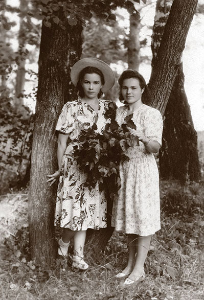 Раиса Титаренко (слева) с сестрой в Башкирии на летних каникулах 1951 года – такой ее осенью впервые увидит Горбачев. Надпись на обороте: «В схватке с ревматизмом», значит, ангину с осложнениями она перенесла еще до встречи с будущим мужем