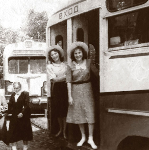 Раиса Титаренко (слева) с подружкой на подножке трамвая. По настроению это как будто кадр из культового фильма шестидесятников «Июльский дождь», хотя на дворе еще только начало 50-х