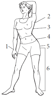 Но даже при идеальном весе могут быть нарушены гармоничные пропорции тела, например, жирок будет откладываться в столь определенных местах, что это будет всем заметно. Для этого нужно еще знать и гармоничные пропорции. Они таковы. Окружность грудной клетки (измеряется под молочной железой, рис. 1, поз. 3) должна составлять половину роста плюс 2–5 см, бюста (измеряется по молочной железе, рис. 1, поз. 2) – окружность грудной клетки плюс 8-10 см. Для талии (рис. 1, поз. 4) этот показатель можно рассчитать по формуле: рост минус 105. Объем бедер должен быть больше окружности талии примерно на 30 см.
