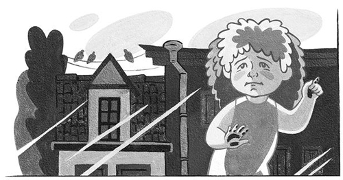 Надоело мне, встал я, бросил газету, подошёл к окну и – глаза вытаращил. Думаю: батюшки, что это мне – во сне снится, что ли? Вижу – за окном, на узеньком железном карнизе, стоит – кто вы думаете? Стоит девочка. Да такая девочка, о каких вы и в сказках не читывали. Ростом она меньше самого маленького мальчика с пальчика. Ножки у неё босые, платье всё изодрано; сама она толстенькая, пузатая, нос пуговкой, губы какие-то оттопыренные, а волосы на голове рыжие и торчат в разные стороны, как на сапожной щётке.