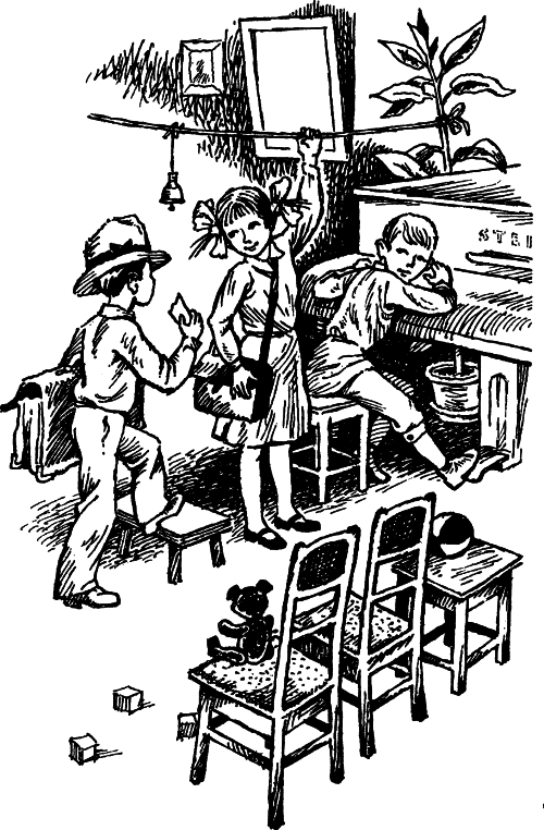 Тащи сюда стулья,Неси табуретку,Найди колокольчик,Тесёмку давай!..Сегодня нас трое,Давайте устроимСовсем настоящий,Звенящий,Гремящий,Совсем настоящийМосковскийТрамвай.Я буду – кондуктор,Он будет – вожатый,А ты – безбилетный покаПассажир.Поставь свою ножкуНа эту подножку,Взойди на площадкуИ так мне скажи:– Товарищ кондуктор,Я еду по делу,По срочному делуВ Верховный Совет.Возьмите монетуИ дайте за этоМне самый хорошийТрамвайныйБилет.Я дам вам бумажку,И вы мне – бумажку,Я дёрну тесёмку,Скажу:– Поезжай!..Вожатый педалиНажмёт у рояля,И медленноТронетсяНаш настоящий,Как солнце блестящий,Как буря гремящий,Совсем настоящийМосковскийТрамвай.