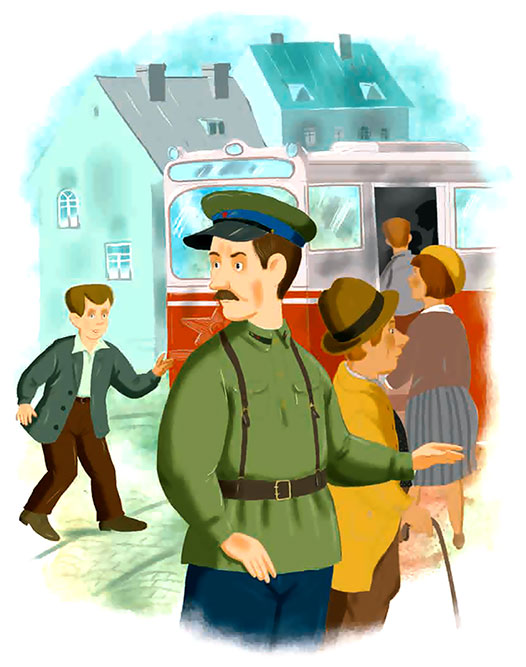 Я уже хотел несолоно хлебавши возвращаться в сад, как вдруг увидел – за углом, на трамвайной остановке – защитную командирскую фуражку с синим кавалерийским око́лышем. Кажется, ещё никогда в жизни я так не радовался, как обрадовался в эту минуту. Сломя голову я побежал к остановке. И вдруг, не успел добежать, вижу – к остановке подходит трамвай, и командир, молодой кавалерийский майор, вместе с остальной публикой собирается протискиваться в вагон.