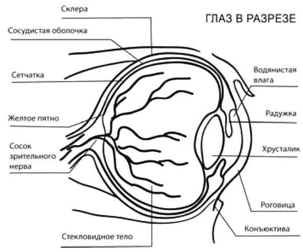 Оптическая система глаза (обеспечивающая зрение) состоит из водянистой влаги, хрусталика, стекловидного тела.
