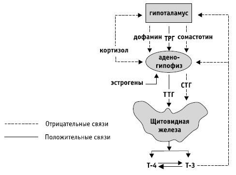 Рис. 2. Схема регуляции гипоталамо-гипофизарно-тиреоидной системы