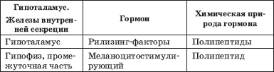 Таблица 1. Гормоны желез внутренней секреции (Потемкин В. В., 1986)