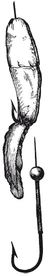 Рис. 51. Крючок с грузом для trolling и насаженная рыбка