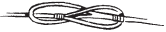 1) Концы двух колен лесы на вершок накладываются друг на друга и завязываются в двойную петлю, которая затягивается как можно крепче. Это рыбачий узел. 2) На конце одного колена делают простую петлю, в которую пропускают конец другого; этим последним обхватывают первый волосок и завязывают такую же петлю. Петли затягиваются, лески растягиваются в противоположные стороны, так что образовавшиеся из петель узлы сильно нажимают один на другой и этим затягиваются еще крепче (рис. 19). Если леска делается из т. н. буйволовых волосков или жилок, то употребляется первый способ (рис. 17 и 18), потому что в первом способе связывания нет такого резкого сгиба, как во втором.