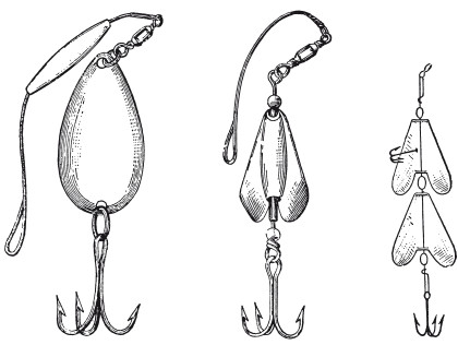 Большей частью блесна сама по себе служит приманкой хищной рыбы, но иногда, особенно для ловли окуней при плохом клеве, нелишне насаживать на крючок червя или малька.