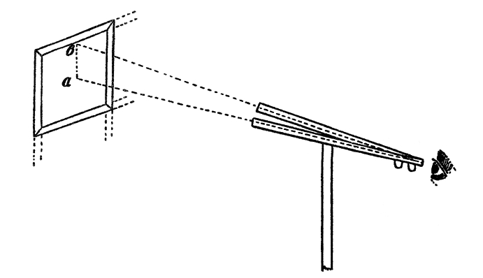 Для первых опытов, чтобы руки не уставали, стволы нужно класть, как я уже сказал, на какую‐нибудь подставку, так, чтобы верхняя часть подставки, нижняя сторона рамы и глаз наблюдателя были на одной прямой линии. При этом приподнимать дульную часть ствола нужно как можно медленнее, можно даже останавливать подъем, чтобы лучше рассмотреть треугольник. Самое трудное для начинающего – это установить правильно стволы и увидеть треугольник; раз треугольник замечен, дальнейший осмотр уже не представляет ничего трудного.