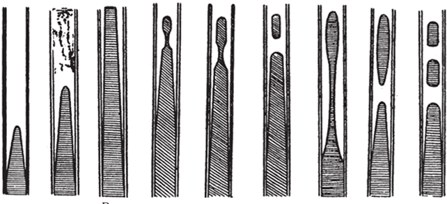 Этот эллипс, называемый мастерами наших казенных заводов треугольником, образуется почти у патронников, если смотреть с казны. Вначале он кажется небольшим, но при постепенном поднятии ствола кверху он, двигаясь к дулу, постепенно увеличивается в длину и ширину и даже выходит передним своим концом из дула.