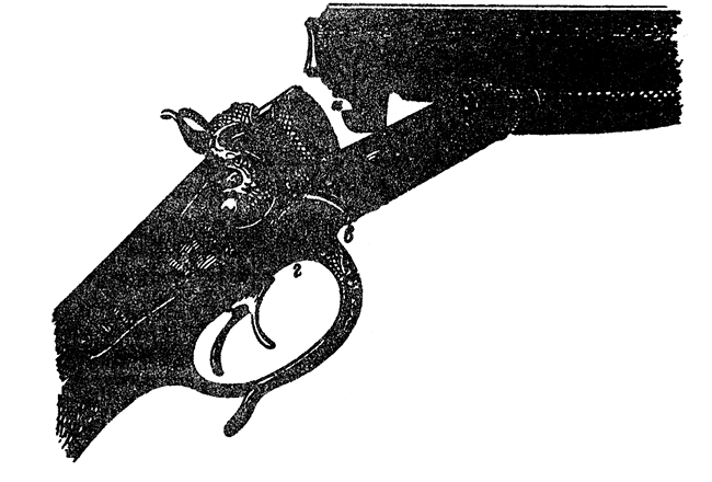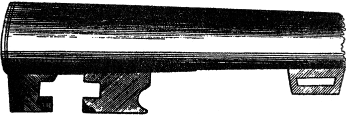 Наибольшие же удобства представляет рычаг системы Ричардса, у которого затвор помещается вверху. При этом затворе снизу стволов находится только один крюк с одной передней полукруглой выемкой. Вырез затвора сделан в несколько удлиненной (на 7½ мм) верхней планке стволов, а пружинный рычаг лежит позади курков сверху накладки и оканчивается вертикально стоящим соском. Этим рычагом можно также отпирать затвор, не отнимая руки от шейки ложи, хотя здесь большой палец надо поднимать кверху и для отвода рычага вправо надо употреблять усилия больше, чем в рычагах с пуговкой. Единственное неудобство затвора Ричардса заключается в его непрочности в дешевых ружьях.
