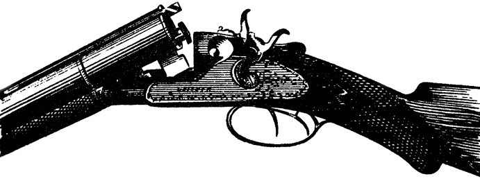 Почти все дробовые ружья, заряжающиеся с казенной части, имеют стволы, откидывающиеся при помощи особого механизма кверху, очень редко вбок. С этой целью снизу у казны к ним припаяны железные крючья для затворов. Передний (двойной) крюк своим полукруглым вырезом спереди задевается за круглый, вделанный в соответственную часть ложи поперечный валик и свободно движется на этом валике вверх и вниз на столько, сколько нужно для поднятия и опускания казенной части стволов. Чтобы вырез не соскакивал с валика (иногда винта) взад, впереди его делается особая скобочка для запорки, которая скрепляет со стволами переднюю часть цевья. Сзади переднего крюка есть вырез, против такого же выреза в заднем крюке. При запирании стволов в эти вырезы входит задвижка поворотной бляхи, которая движется горизонтально привинченным к ней снизу наружным рычагом, имеющим различное положение и различную форму. В последнее время более дорогие центральные ружья стали делать с тройным затвором; третий крючок находится над обрезом казны и входит в углубление, сделанное в накладке ложи. Этот третий крючок, соответствуя хвосту казенника в шомпольных ружьях, в некоторой степени, конечно, увеличивает прочность затвора, но особой надобности в этом усложнении не имеется. Кроме того, надо всегда наблюдать за тем, чтобы в гнездо крючка не попало даже соринки, что на лесной охоте случается очень часто.